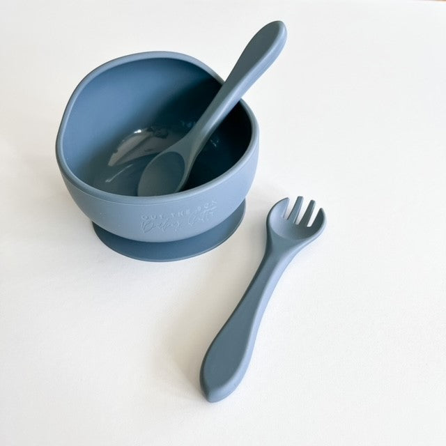 Grey Baby Feeding Bowl and Cutlery Set