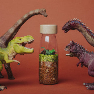 Go on a prehistoric adventure with the Jurassic Spy Sensory Bottle! Inside each bottle is a tiny dinosaur world, waiting to be discovered. Shake it up, spot the dinosaurs and let your little one’s imagination roam through this calming and engaging sensory experience.