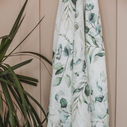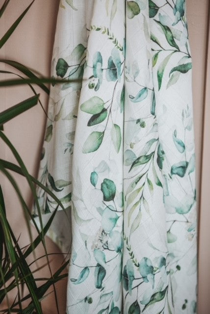 This gorgeous eucalyptus style muslin is organic GOTS certified. The fabric is made of 50% cotton and 50% bamboo fabric.