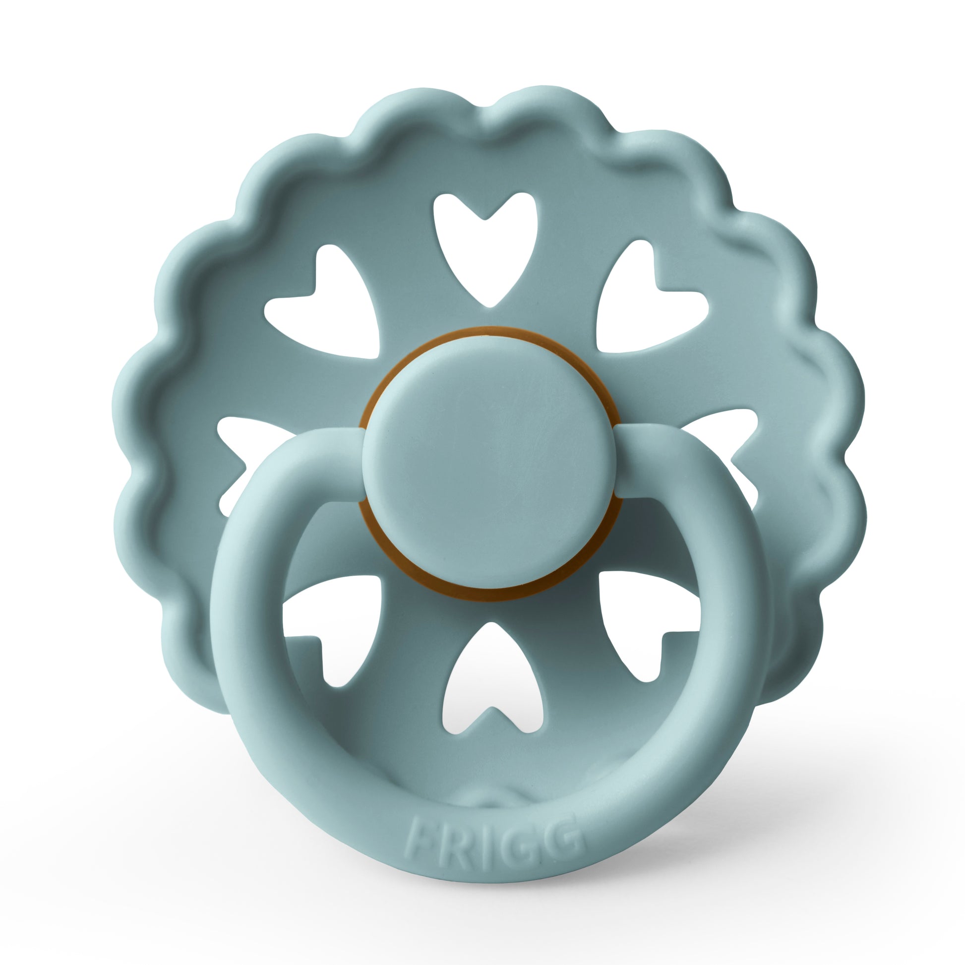 FRIGG Fairy tale with scalloped edges and hearts surrounding the shield mimic one specific paper cutting by H. C. Andersen. The 8 little hearts support the universality of his creative work, and they symbolize love, the universal language of the world. This is the inspiration that lies within the FRIGG Fairytale pacifiers: They are approachable for everyone because love is a language, everyone can speak and understand.