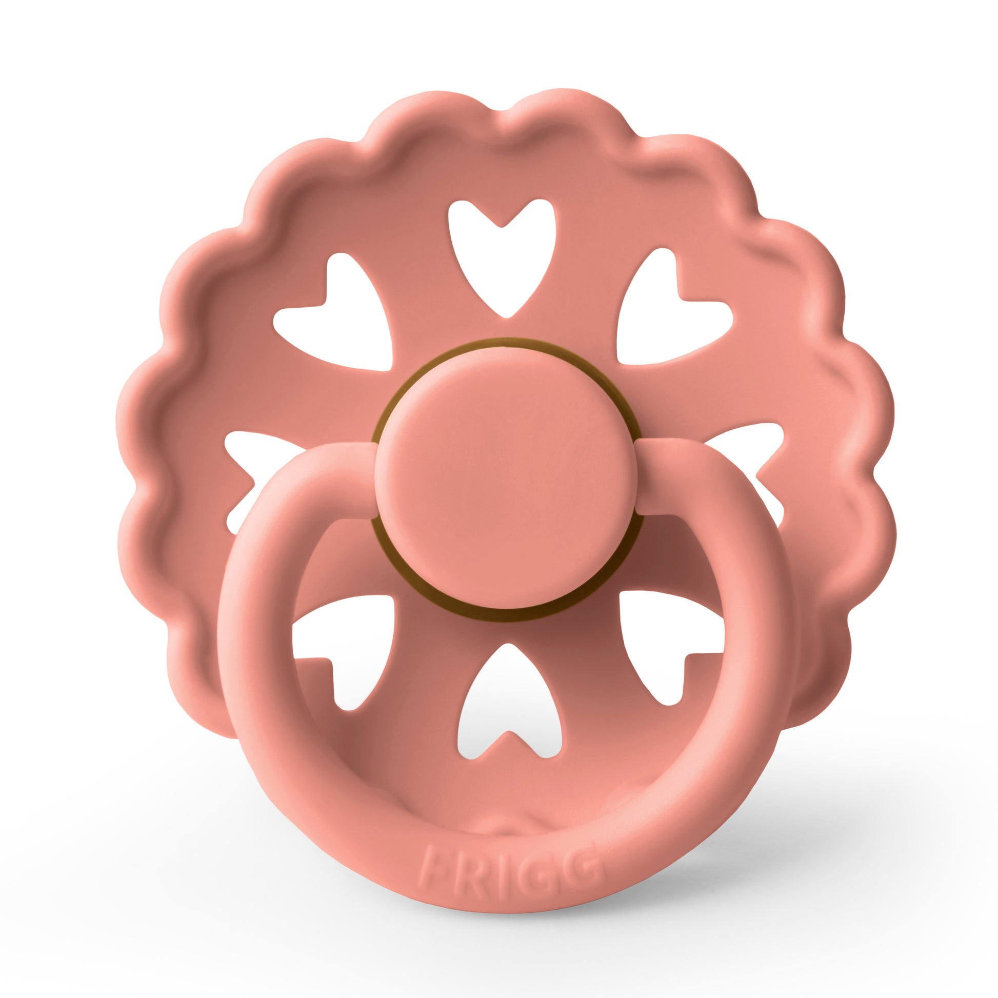 FRIGG Fairy tale with scalloped edges and hearts surrounding the shield mimic one specific paper cutting by H. C. Andersen. The 8 little hearts support the universality of his creative work, and they symbolize love, the universal language of the world. This is the inspiration that lies within the FRIGG Fairytale pacifiers: They are approachable for everyone because love is a language, everyone can speak and understand.