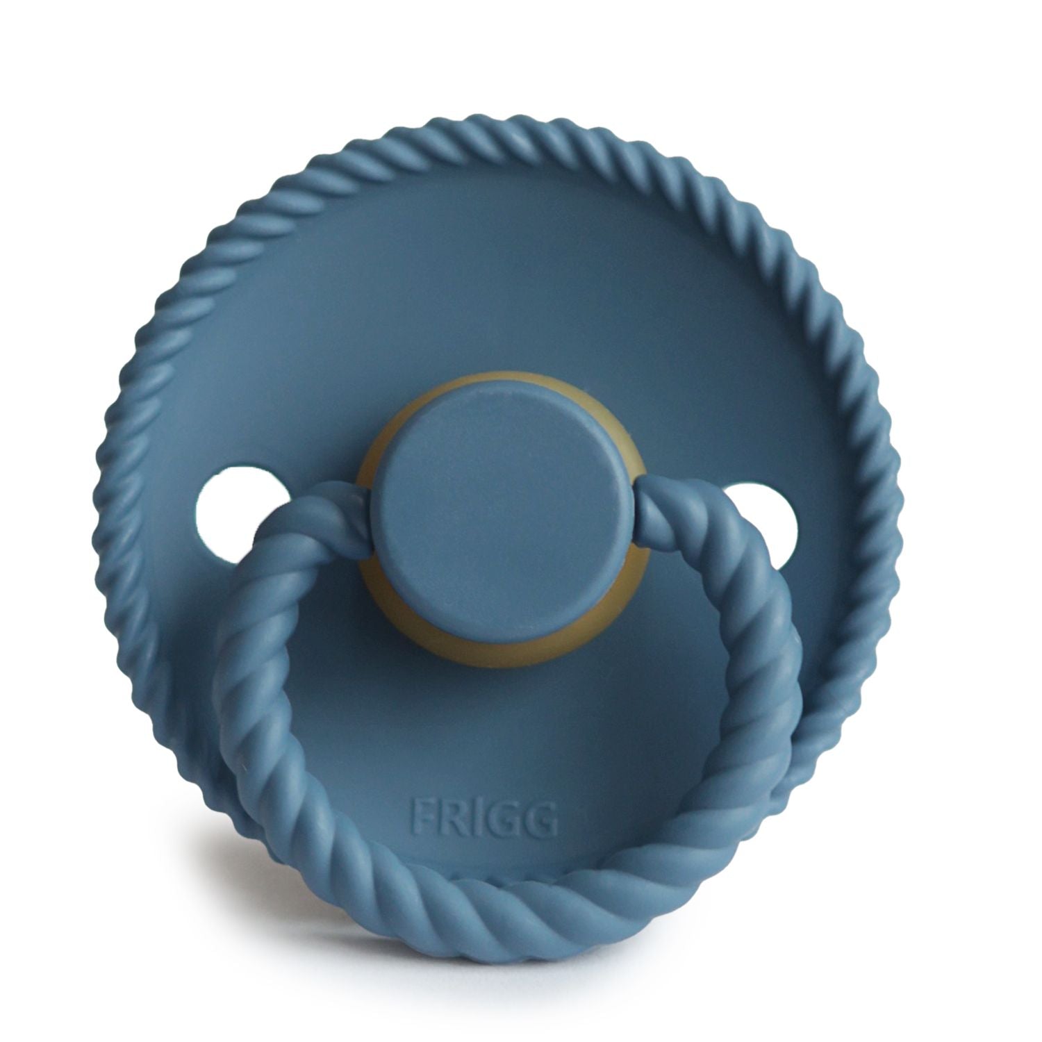 - The FRIGG line of Rope dummies has been thoughtfully designed for your baby's comfort. The outward curve keeps the pacifier off their delicate skin, while features like air holes and a security handle ensure your baby stays safe.