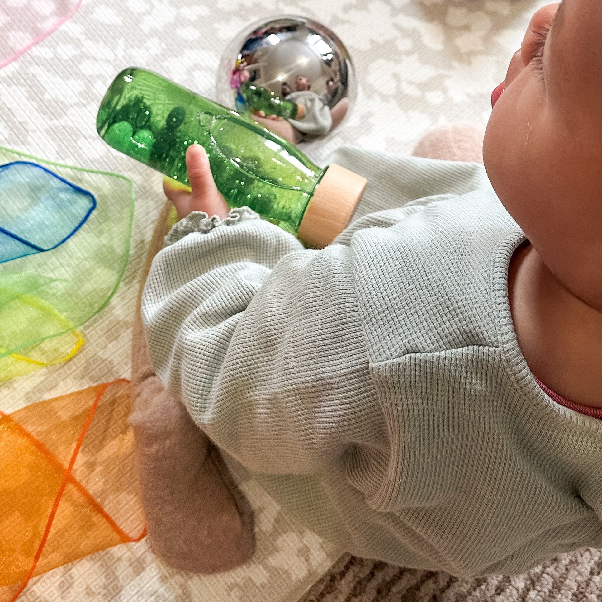 Sensory Discovery: Inside these bottles, a delightful world of colour, glitter, sequins, and pompoms awaits. Watching these elements float and dance is a source of endless fascination.