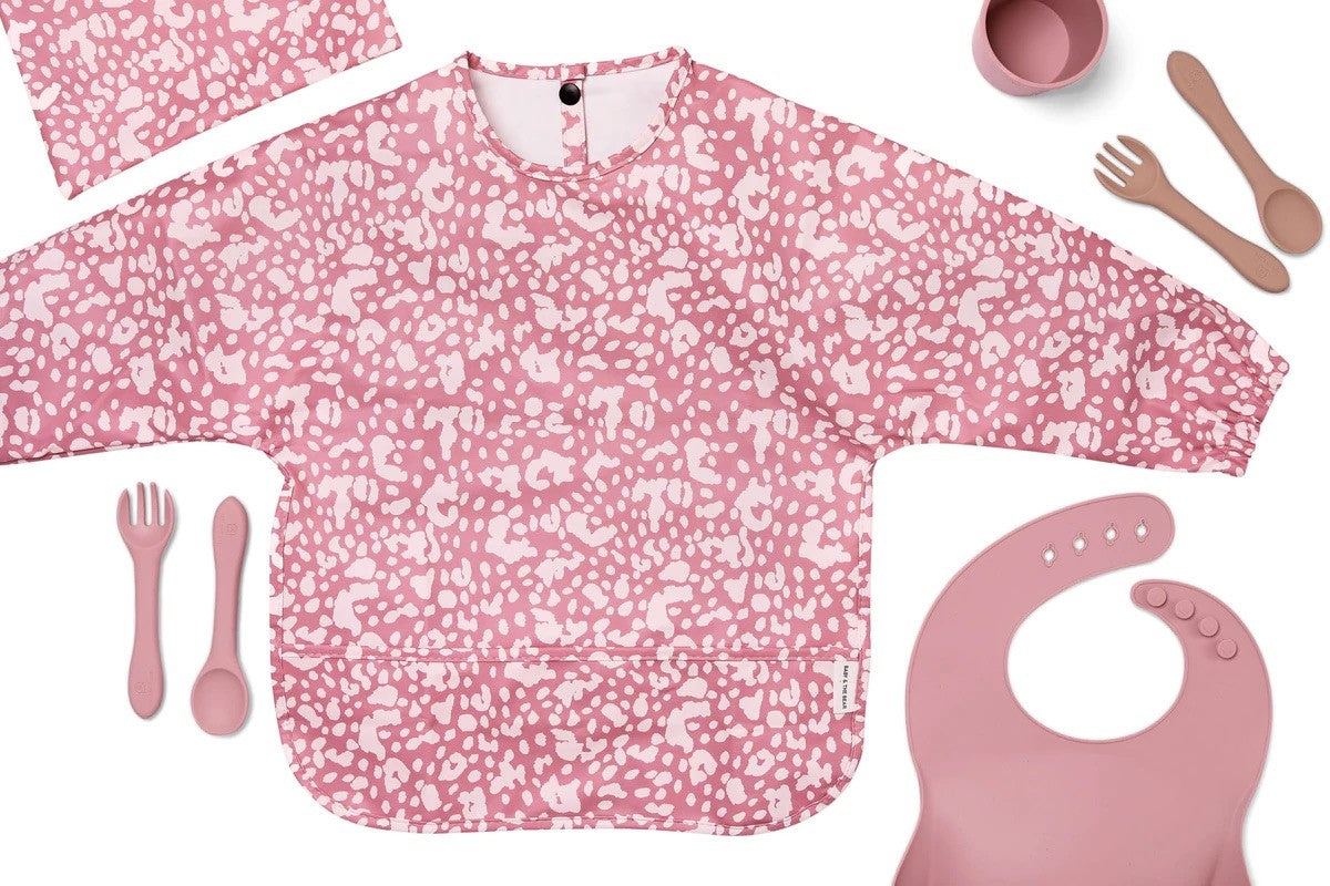 Long Sleeve Waterproof Bib: Provides extensive coverage, shielding your baby's clothing from mealtime mishaps with a splash of chic pink leopard flair.