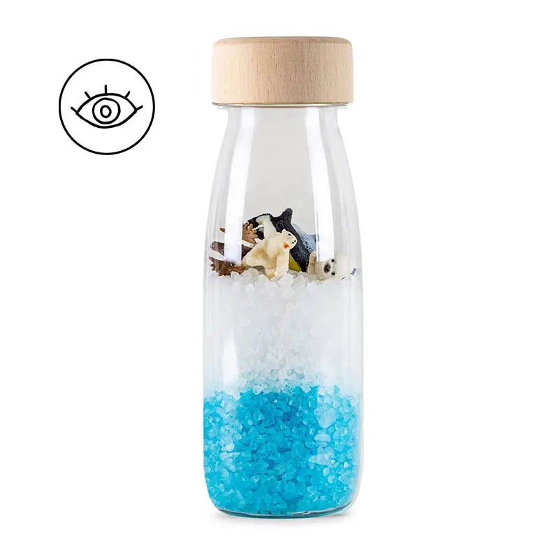 Introduce your baby to the captivating Arctic Spy Sensory Bottle. This sensory toy is designed to provide your baby with a fun tactile and visual experience.