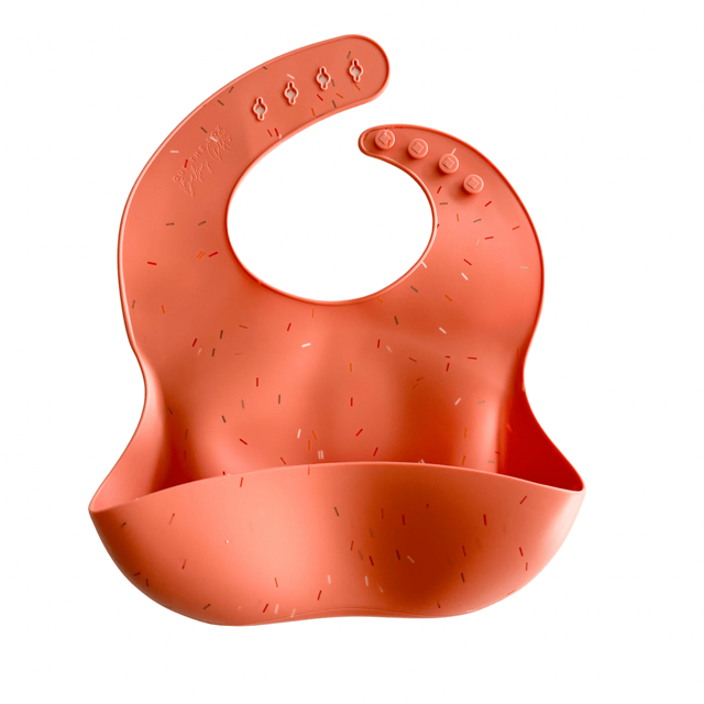 Experience hassle-free mealtimes and protect your little one's clothes in style with our Silicone Feeding Bib in Confetti Melon. Created with practicality and comfort in mind, this bib is designed to make feeding your child that much less messy!