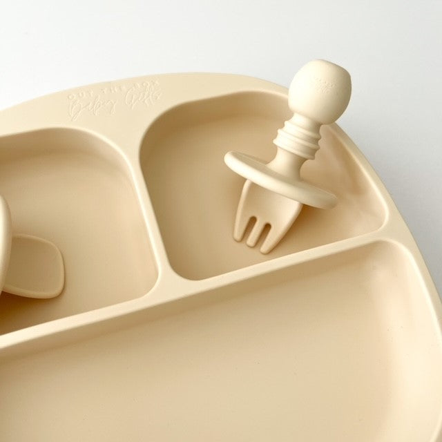 - Silicone Suction Plate with 3 Compartments: Our silicone plate is thoughtfully designed with three compartments. The curved edges of the plate sections help with scooping, which develops little one's fine motor skills while they enjoy their favourite foods.