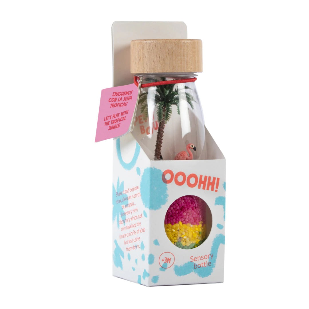 Introduce your baby to the captivating Flamingo Spy Sensory Bottle. This sensory toy is designed to provide your baby with a fun tactile and visual experience.