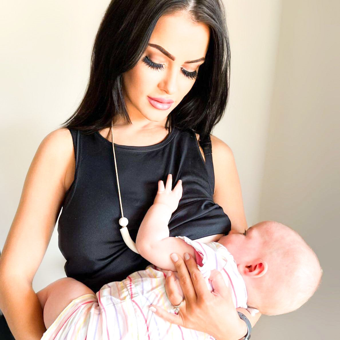 A stylish and functional accessory for breastfeeding mothers, the Toffee Dream Necklace keeps your baby's attention while nursing