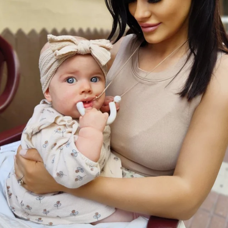 This necklace also features a snap clasp to ensure safe wearing and add a little more style to your teething journey.