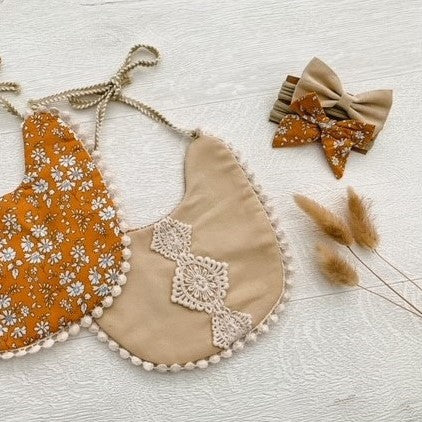 Add a touch of style to dribble time with these vintage feel bibs, complete with a cute pom pom trim.