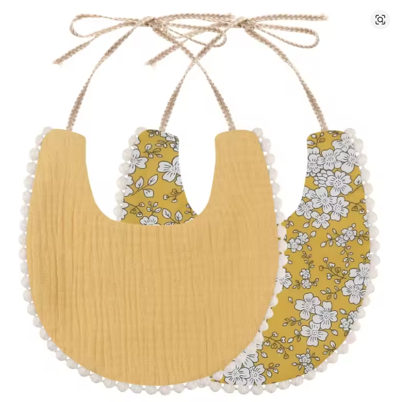 Add a touch of style to dribble time with these vintage feel bibs, complete with a cute pom pom trim.